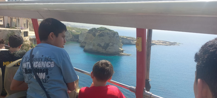 Grade 7 joined the Hop-on-Hop-Off tour of Beirut to see all the important aspects of the city! One major stop was at the Raouche Rocks, and another was an extended visit to the National Archaeological Museum. The trip was partly a tie-in to their lessons, and partly for . . . fun! |