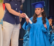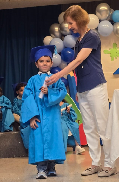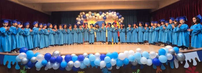 Bravo, wonderful KG III students! Everyone of them passed with flying colors, and moved on to a new phase. In a wonderful ceremony, the pre-school coordinator distributed well-merited diplomas to the KG III students. So here they are, everyone of the fresh graduates! Congratulations! |