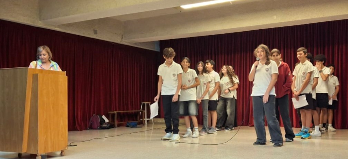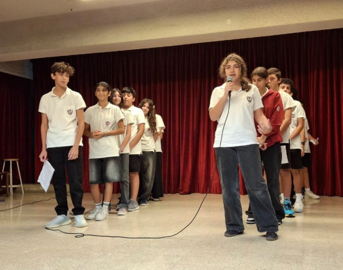 It was the turn of grade 8 to give an Arabic presentation, this time a tie-in to the classes of Mrs Anoinette Samaha. The premise was ingenious: students stand in line and give accounts as to the provinence of famous proverbs and idioms. It was a witty session, and an opportunity for students to discourse in front of a large audience. Bravi! |