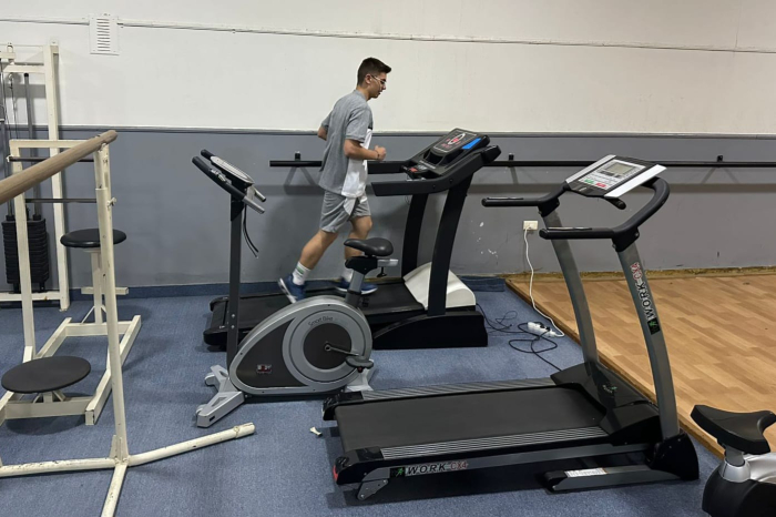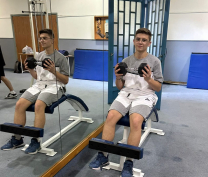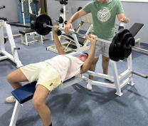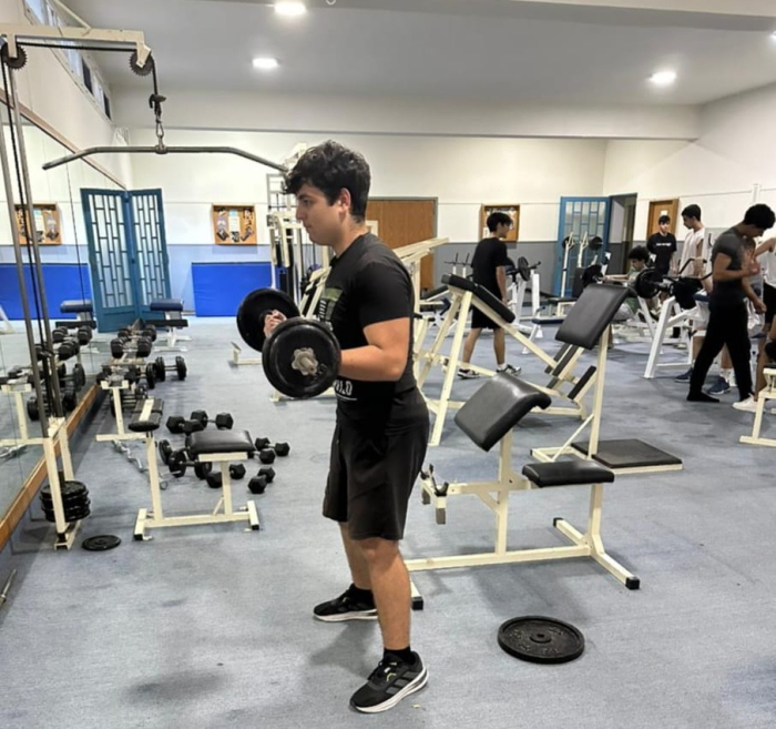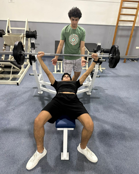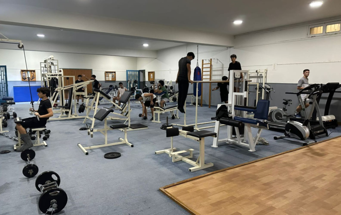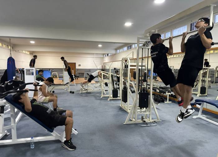 A group of dedicated students assiduously excercise in our impressive gym, with instructor Mr Jean Nassar.