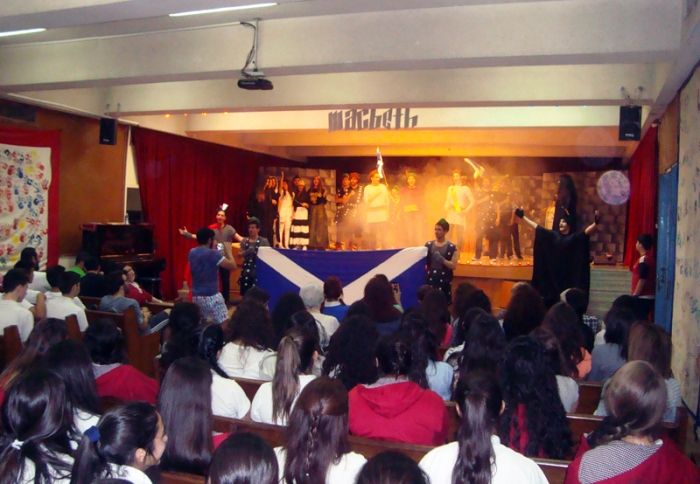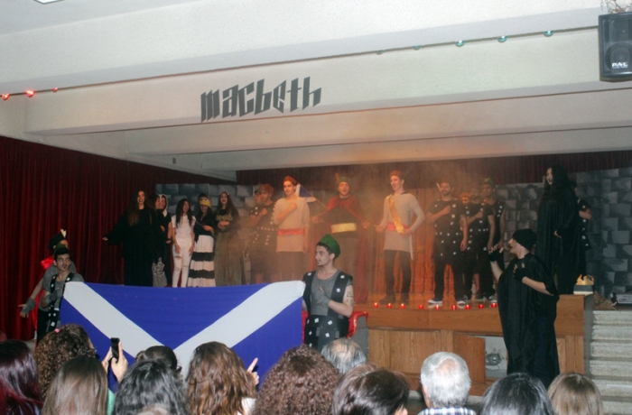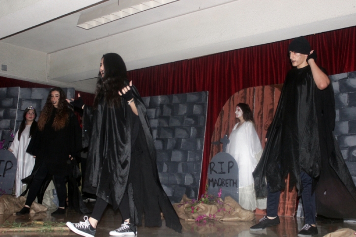 Every year, Ms Wilma and grade 11 prepare top-notch musicals. This year was no exception. "Macbeth - the Musical" was an extravagant feast to the eye and the ear. The acting was superb. The music and dancing were spectacular. The sets were magnificent. The effects were astounding. The use of space - everywhere in the auditorium - was amazing. Dori Fares was Macbeth. Nour Sadek was Lady Macbeth. The students of grade 11 (all sections), as well as some students from other classes, provided an impressive supporting cast, complete with show-stopping witches. Ms Wilma, methinks that Shakespeare doth smile in contentment! Incidentally, this musical was presented during the Shakespeare year, practically on Shakespeare's birthday, April 23, 2016. |
