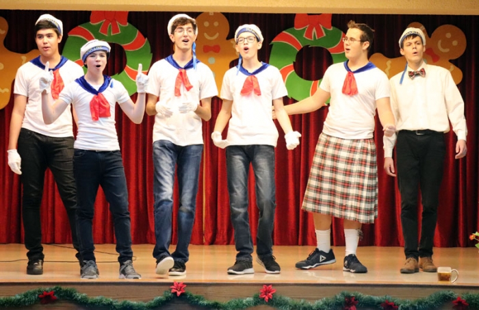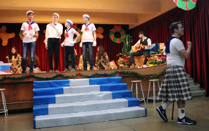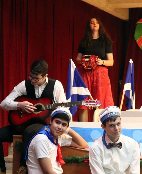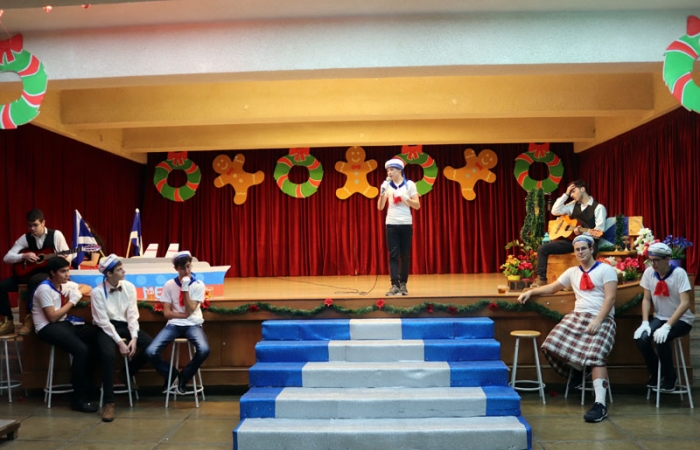 Ms Wilma's Christmas fare was partly Celtic, partly marine, partly Scottish, and partly nostalgia. The theme was "back home for Christmas". The students performed sea shanties and Christmas music. There were even songs with a student in a kilt, and a music-hall number that would have fitted very well in 1940s London! The performance was magical and spectacular! Thanks students and Ms Wilma!
