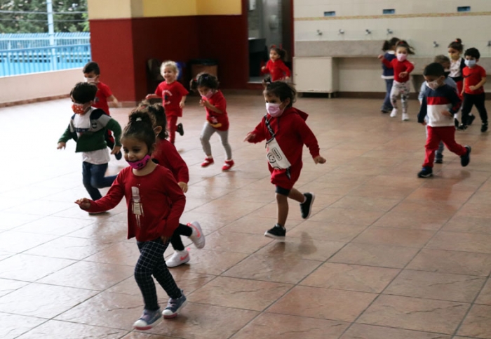 Our roving photographer caught some KG students on camera, as they practiced PE with Coach Bahzad. Incidentally, it was their "Red Day". |