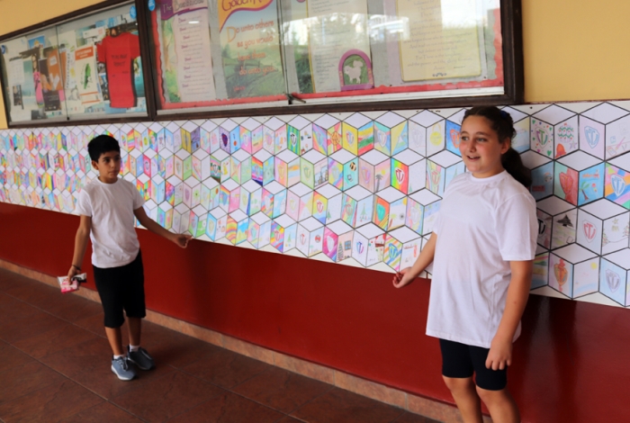 Classes of art teacher Mrs Mary Kfoury worked on a collaborative mural that expressed their creative endeavors and their feelings towards the new school year. It was a stunning production. Thank you Mrs Mary, and bravo students!! |