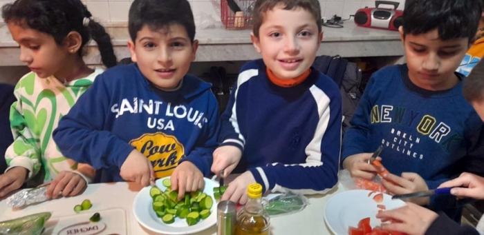 It was a cooking [and eating] session with Ms Latife Yaghi! Grade 3 headed to the school kitchen and had a mini feast, as a tie-in to their Arabic lessons. Here are a few pictures! |