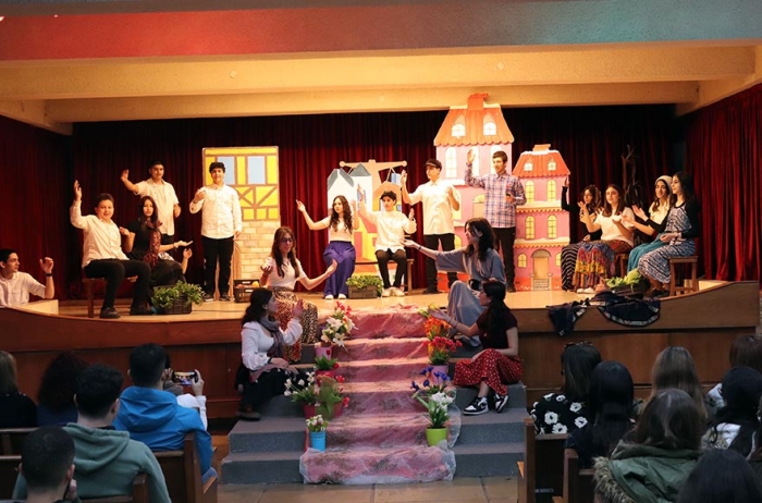 Wow! What a great experience it was! More than 50 students acting, singing and dancing in the great Rahbani musical, "Al-Shakhs"! The musical was astounding, and the students, teachers, and VIP guests had a big treat! The musical was directed by Mrs Lina Bou Malhab, that we thank and salute! The lead actors were Cate Abou Zeid, Jad Najem and Jason Chahwan, assisted by Alex Massaad, Shahd Mdallal, Christie Shami and Jad Faddoul. Congratulations! |