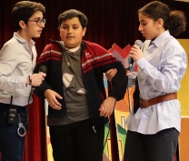 The students of grade 8A presented a dramatization of "The Cop and the Anthem" by O. Henry. The play involved the hapless Soapy who tried hard to go to prison in order to get a hot meal! There was a plot twist at the end that the students delivered well. The lead role was taken by Yorgo Feghali, supported by his talented classmates. The play was ably directed by Mr Samer Hanna, their drama teacher. Congratulations students and director! |