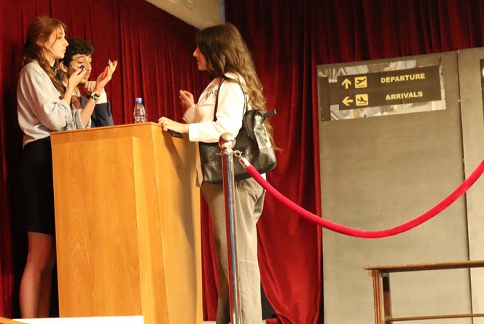 The CTI audience was transported to an airport, inside a plane, and a desert island. These were all in the astounding play, "Flights and Floats", performed by the students of IB1. The play was written, directed, acted, and organized by the students. There were incredible sets, realistic props, and amazing projections. The IB1 students outdid themselves. The play was written by Joshua Mahshi and Reina Karkaba. The direction was undertaken by Jason Chahwan who also prepared the projected videos and the music. The sets were prepared by Bettine Kashouh, Fernando Ashkar and Jimmy Khalife. The actors were class members. And the ever-caring overseer was their teacher of theatre, Mr Samer Hanna. An overwhelming BRAVO! |