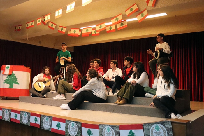 It was a presentation benefiting Independence Day! The students read sections, acted, sang, and even danced a dabké! The event was organized by Mrs Abou Malhab and the Arabic department. The communal dance was taught by Ms Diana Blati, and the teachers of KGIII led their students in rousing music. There was singing, whole-heartedly presented by grade 9, with Zoyi Chaar on the guitar and two students on the percussion. There were group readings, as well as solo readings by Elina Bou Malhab, Joy Neaimi, Abbas Abadi, Joe Saab and Maria Farah, with a special song presented by the young Maeve Iskandar. It was a memorable event. Happy birthday, Lebanon! |