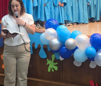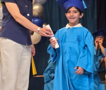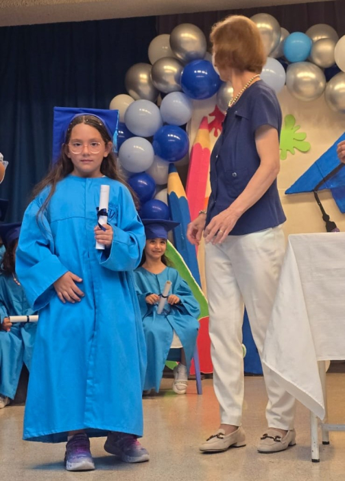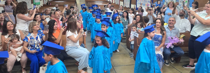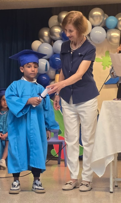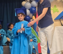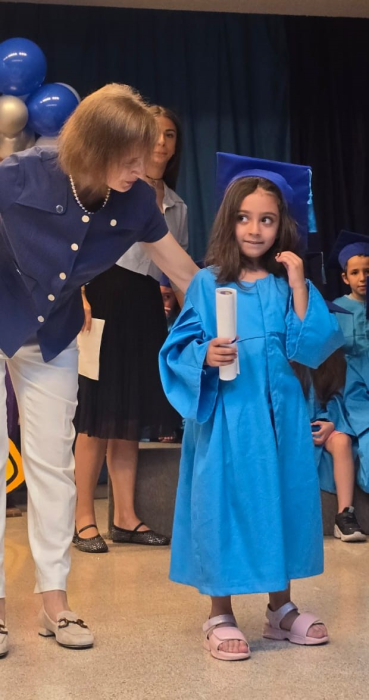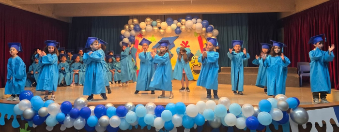 Bravo, wonderful KG III students! Everyone of them passed with flying colors, and moved on to a new phase. In a wonderful ceremony, the pre-school coordinator distributed well-merited diplomas to the KG III students. So here they are, everyone of the fresh graduates! Congratulations! |