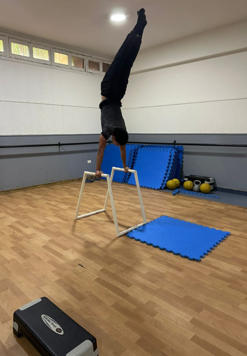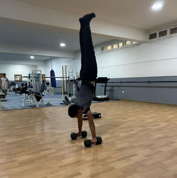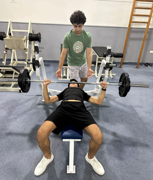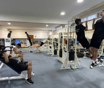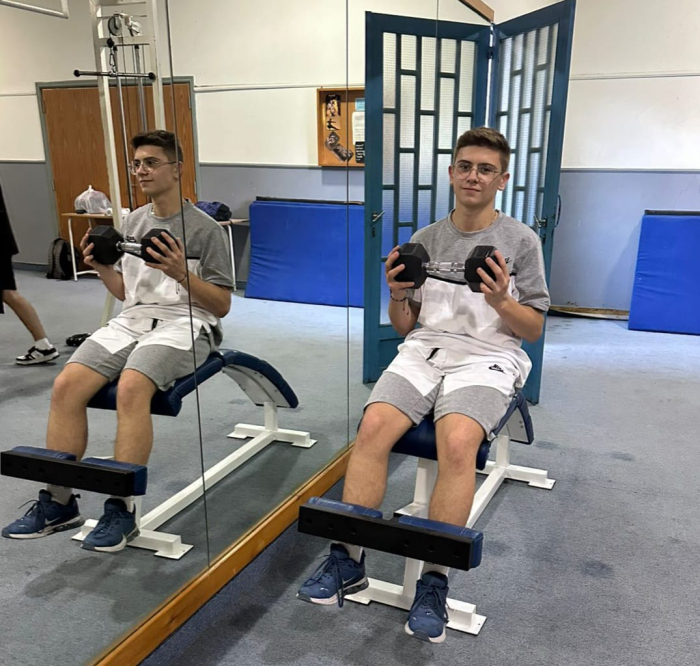A group of dedicated students assiduously excercise in our impressive gym, with instructor Mr Jean Nassar.