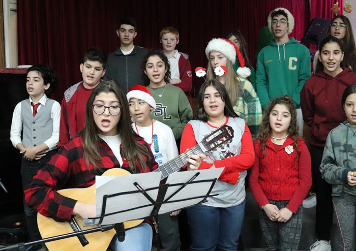 The CTI Christmas concert was given twice for the parents, teachers and students. The voices of angels resounded in the hall, as students intoned old and new favorite carols . . . and Christmas cheer was again shared with the CTI family. The choir was conducted by Mrs Jamie Chaaya. Piano accompaniment was by Mrs Rola Salloum. Photos were taken by Mr Ragheed Breidi. Silent Night, Holy Night All is calm, all is bright Round yon Virgin, mother and child Holy infant so tender and mild |
