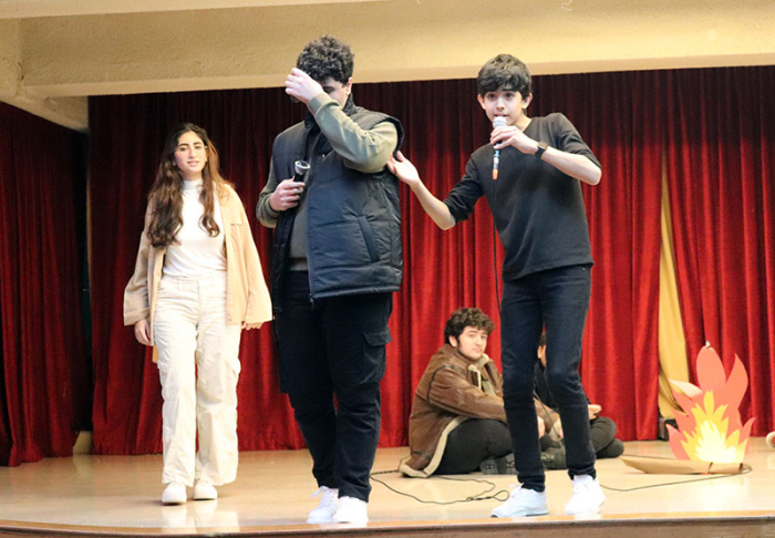 We were on to a big treat: A mini musical presented by grade 10A. The story centered around a man and a travel agent who travel the world, visiting one country after another, sampling different cultures, and witnessing rites and dances. We were even treated to Mongolian throat singing! The event was funny, dramatic, spectacular and well-presented. What struck the audience was the spirit of proactive camaraderie, with a whole class working together under the supervision of their teacher of English, Mr Joe Rachid. The credit to all of this goes to the student Melanie Rabbat. She conceived the event, wrote the script, directed the action, coached the acting, overseered the dances, designed the costumes, and orchestrated the whole shebang along with the enthusiastic cooperation of her class. Congratulations Mr Joe, Melanie, and grade 10A. |